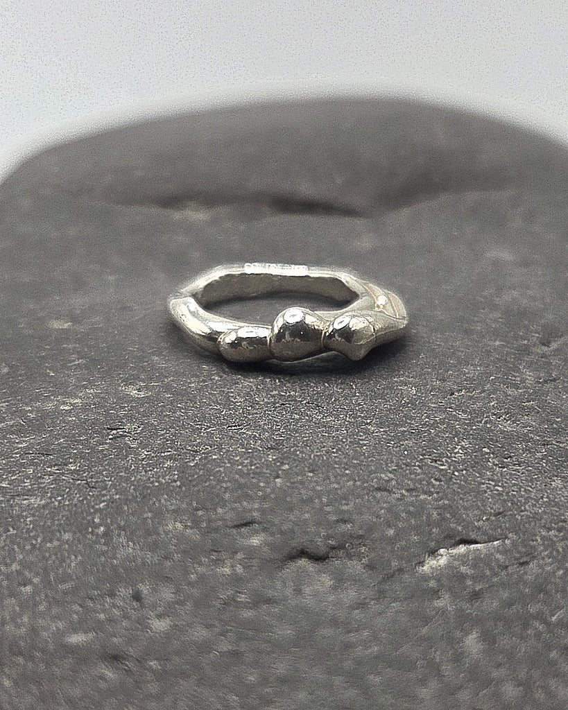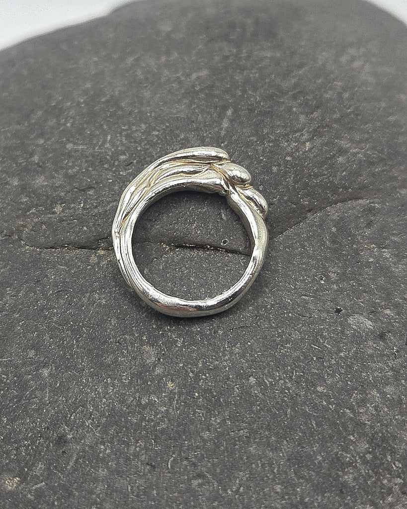 Sterling silver waves breaking over a size 6.5 band.