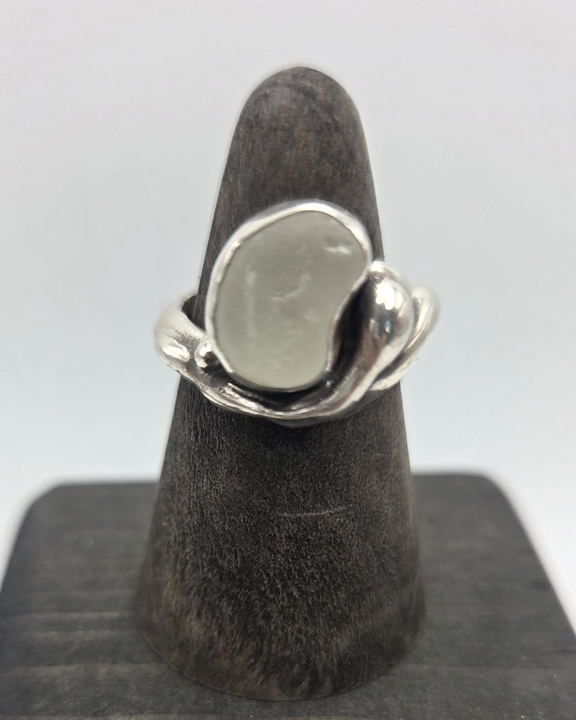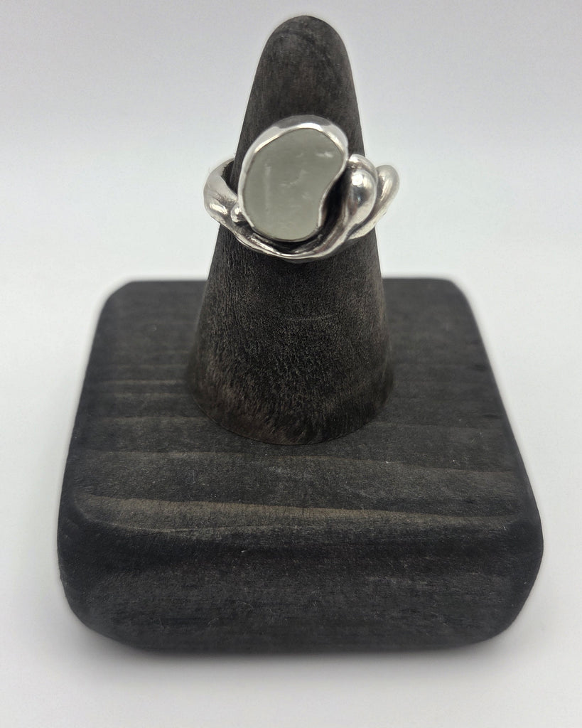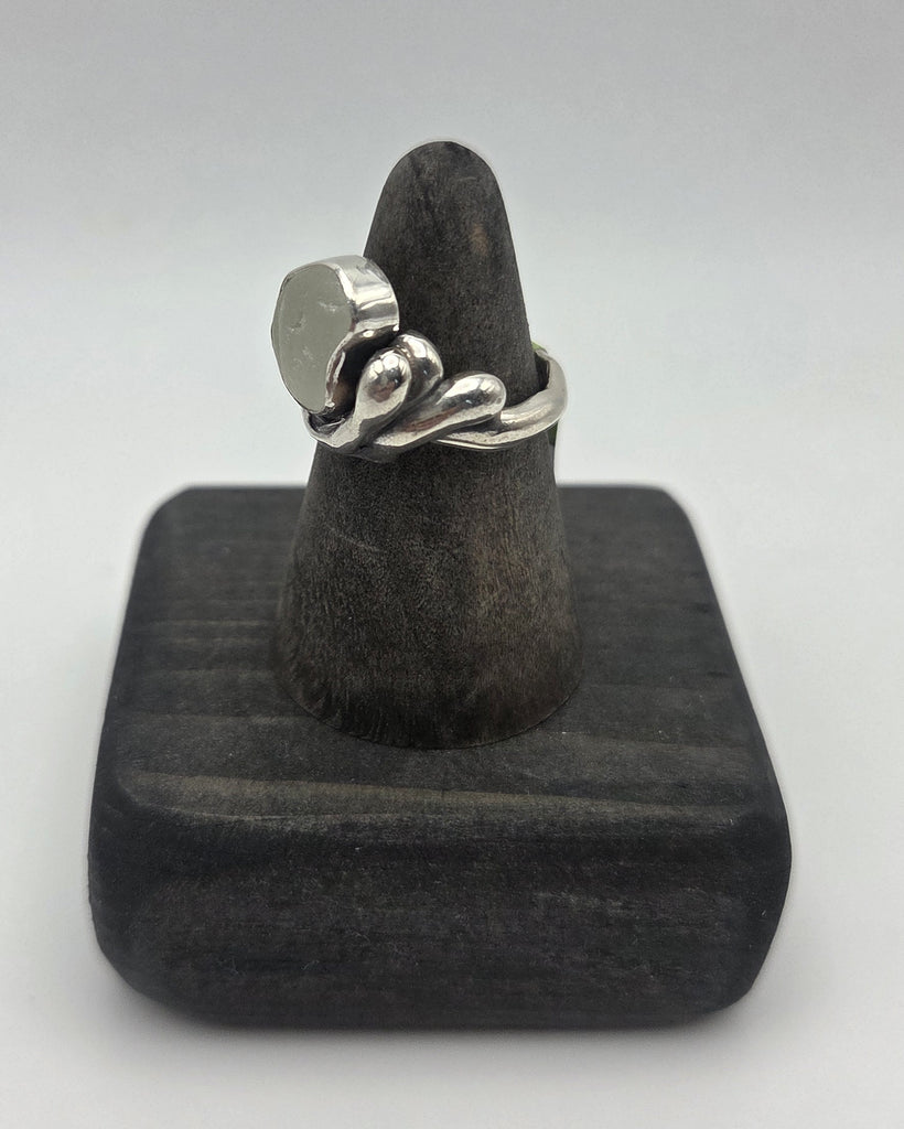 I love the shape of this particular piece of Cape Breton sea glass. I find the shape soothing and a smooth transition to the sterling silver band. Size 5.5