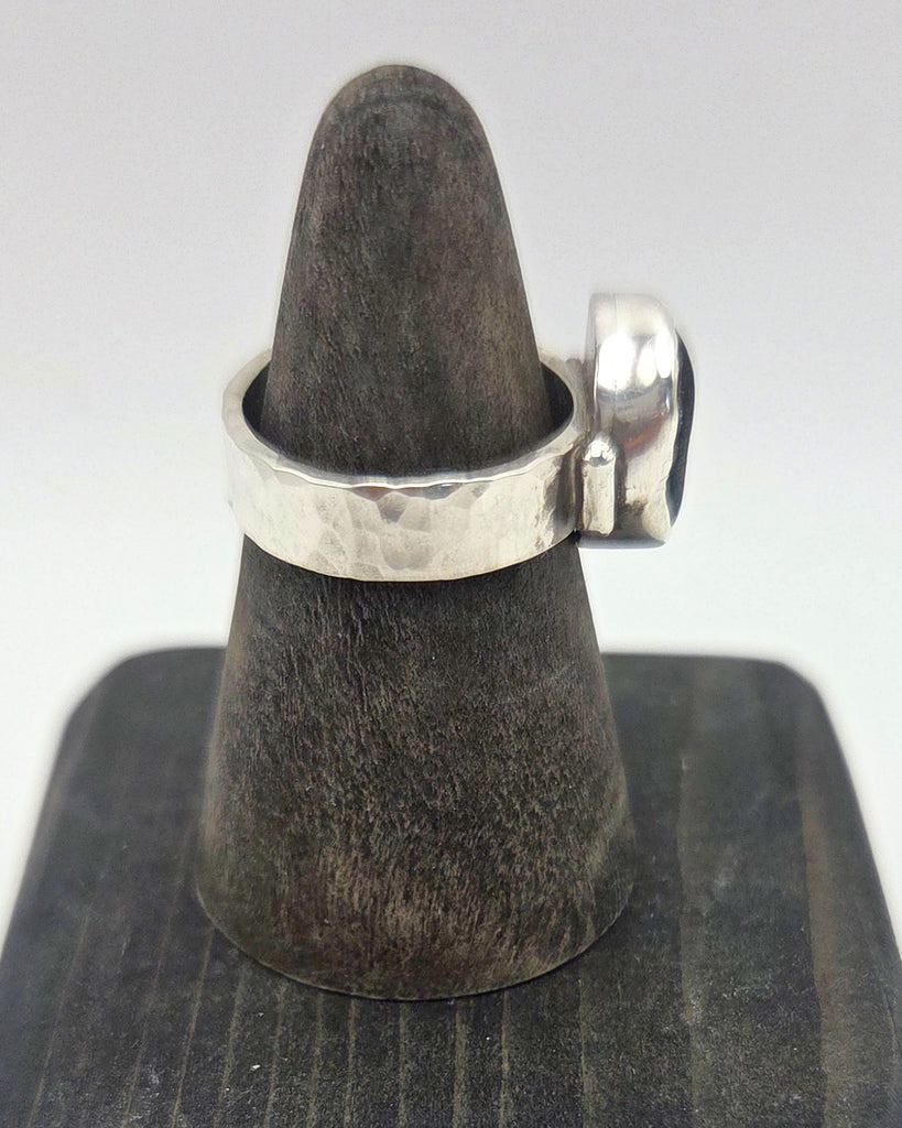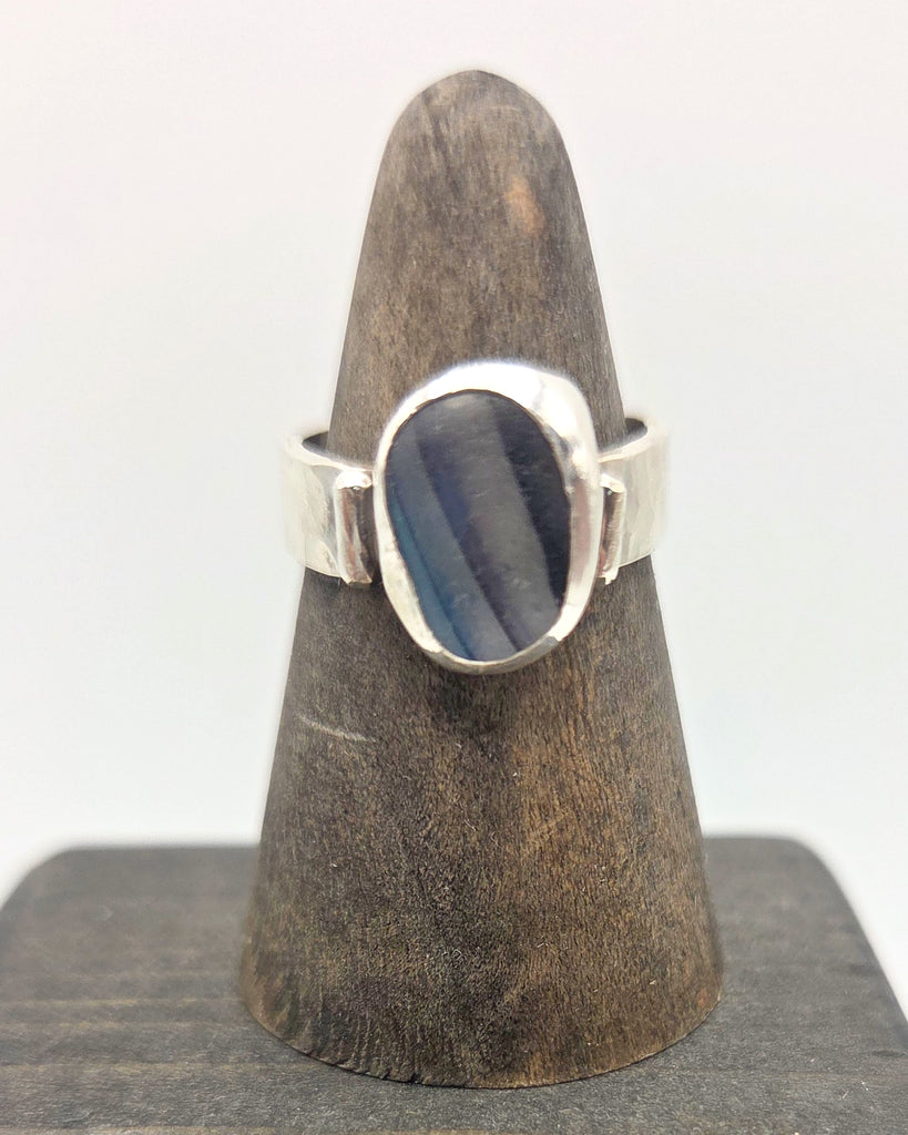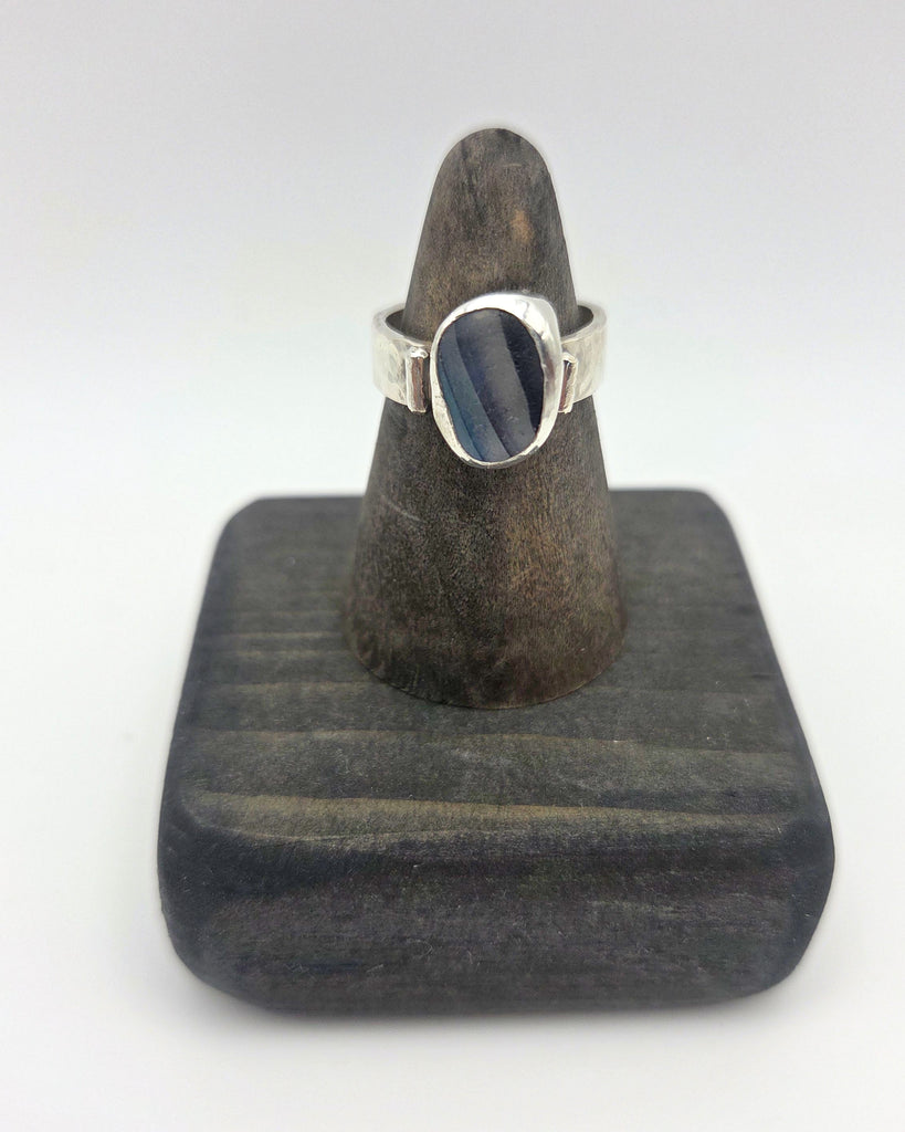 A Seaham striped sea glass piece in sterling silver, size 6.